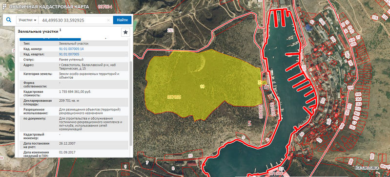 Согласно сведениям публичной кадастровой карты РФ этот участок относится к землям особо охраняемых территорий и объектов. При этом земля имеет целевое назначение: «для строительства и обслуживания гостинично-рекреационного комплекса и яхт-клуба, использования сетей коммуникаций».