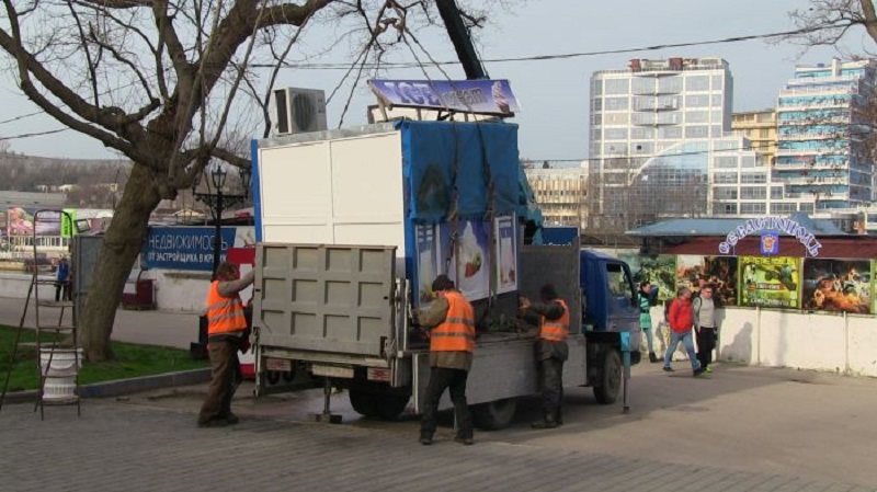 В Севастополе продолжается борьба с незаконно установленными нестационарными торговыми объектами. Павильоны, киоски, торговые палатки демонтируют. Их снос поможет вернуть городу исторический облик, убеждены в правительстве Севастополя.