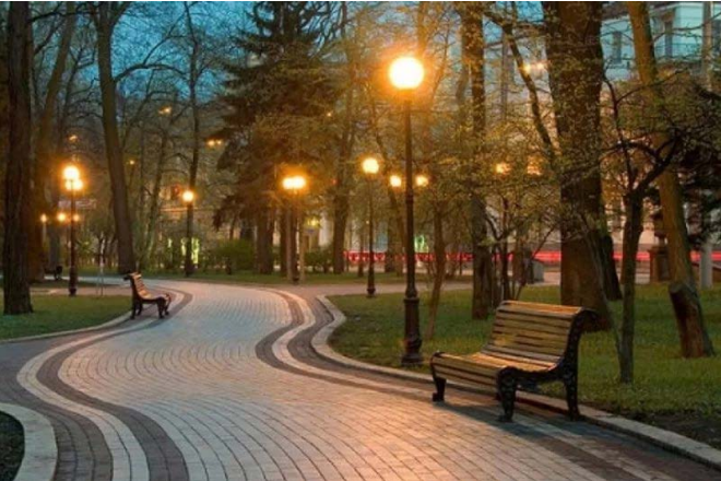 На территории сделают разноуровневое освещение: фонари, художественная подсветка – цветные гирлянды и прожекторы в фонтанах, ландшафтная подсветка – освещение тропинок и газонов. Также в парке появятся велодорожка, цветочные партеры, пешеходные фонтаны и новые лавочки.