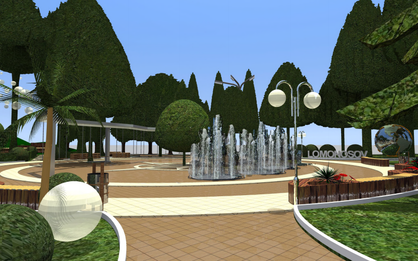 Дорожки в парке Ломоносова выложат плиткой, а в детской зоне сделают резиновое покрытие, где появится рисунок – карта мира. Дорожки на зеленой зоне посыпят натуральными материалами по грунту. Вдоль тропинок поставят 20 фонарей. Площадь осветят двумя мачтовыми светильниками высотой по 11 метров. Также встроят напольные прожекторы и декоративные светящиеся шары. В парке поставят деревянные лавочки со встроенными цветниками и урны. На основе существующей чаши бассейна установят сухие фонтаны. Для детей-подростков и взрослых поставят качели с подсветкой. Тематикой сквера станет обучение и наука, там разместят надпись – LOMONOSOV и архитектурные формы – карта Африки, глобус, телескоп, стопки с книгами и сферы, символизирующие планеты солнечной системы.
